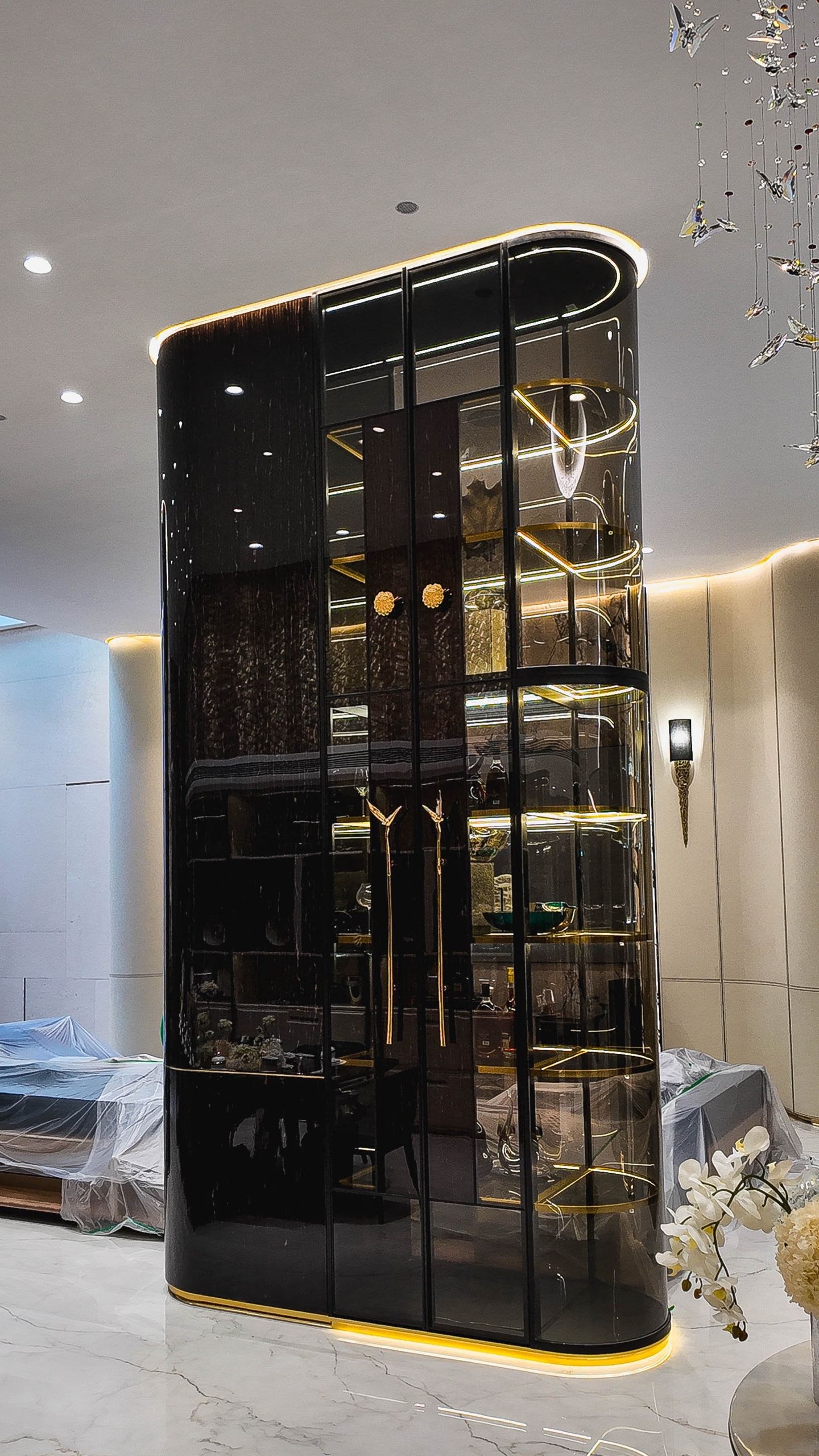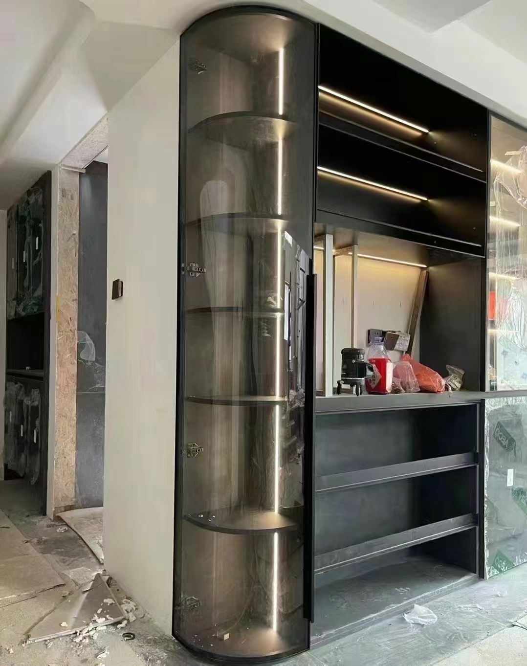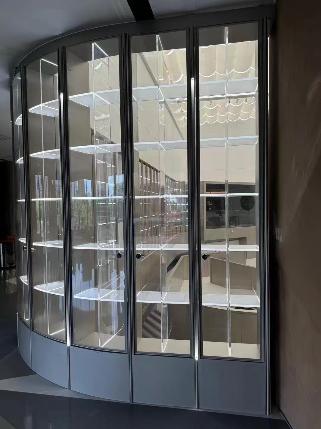 Customize Curve Shape Glass Cabinet is one of the new trend of our production line in minimalist furniture.