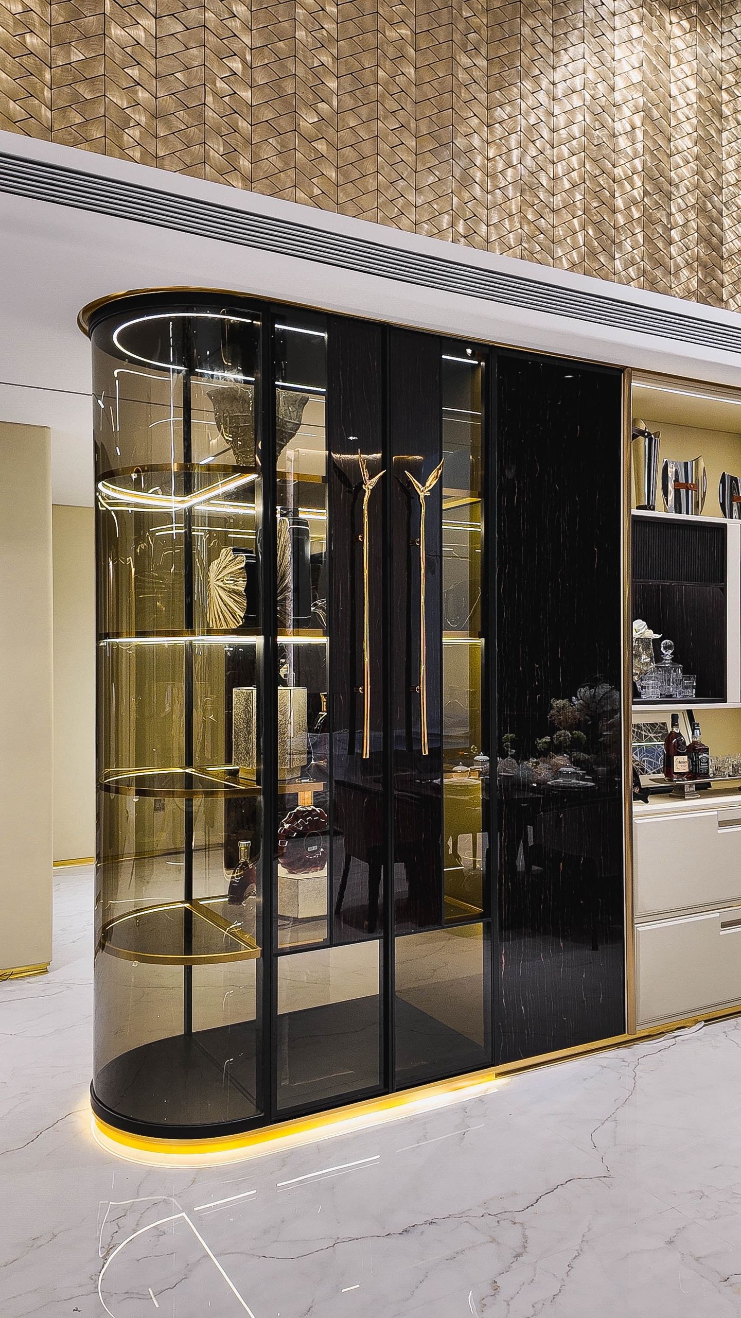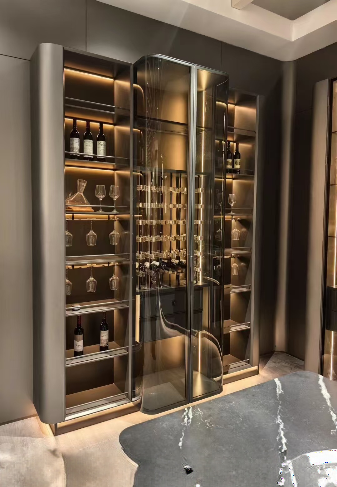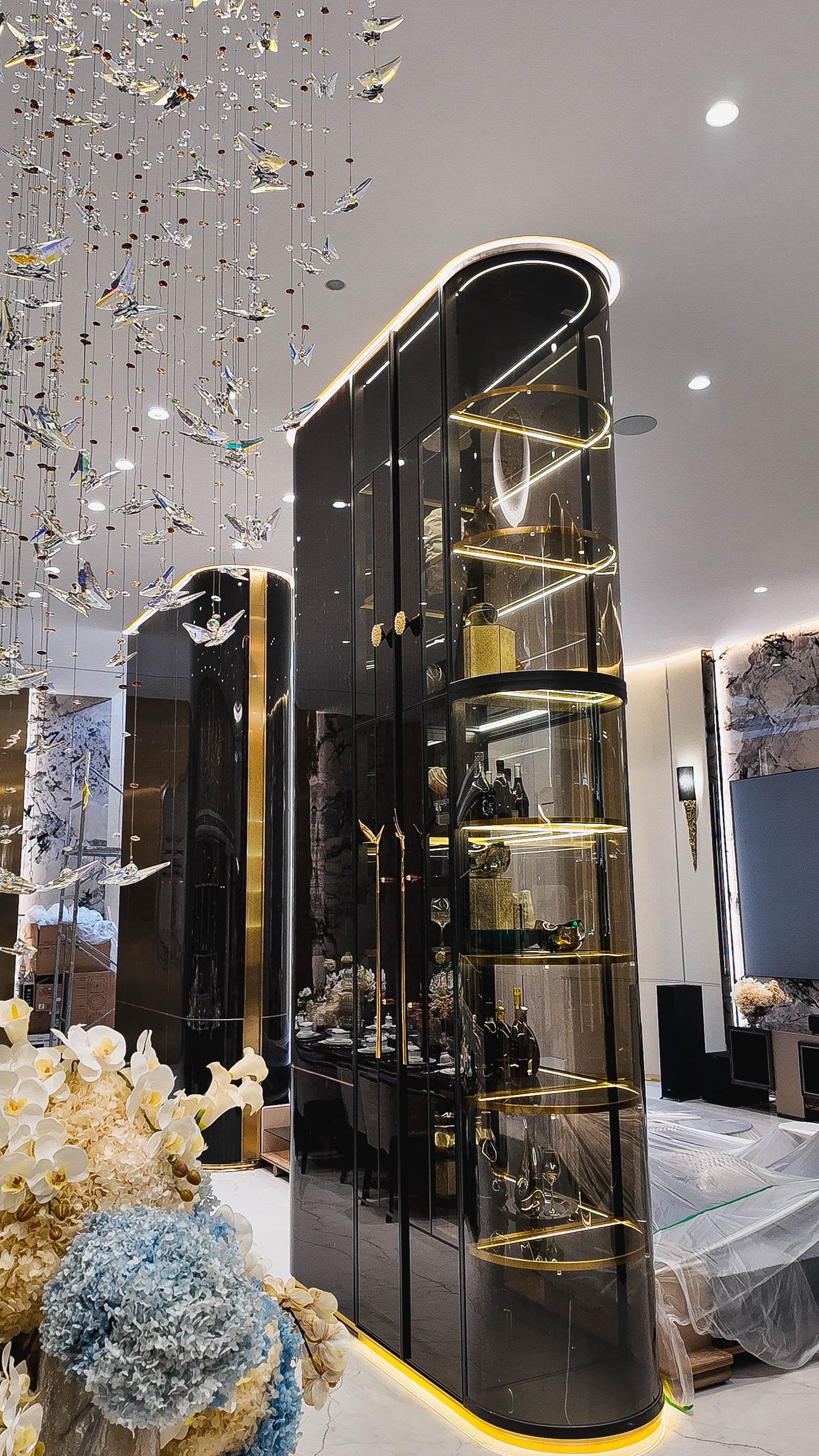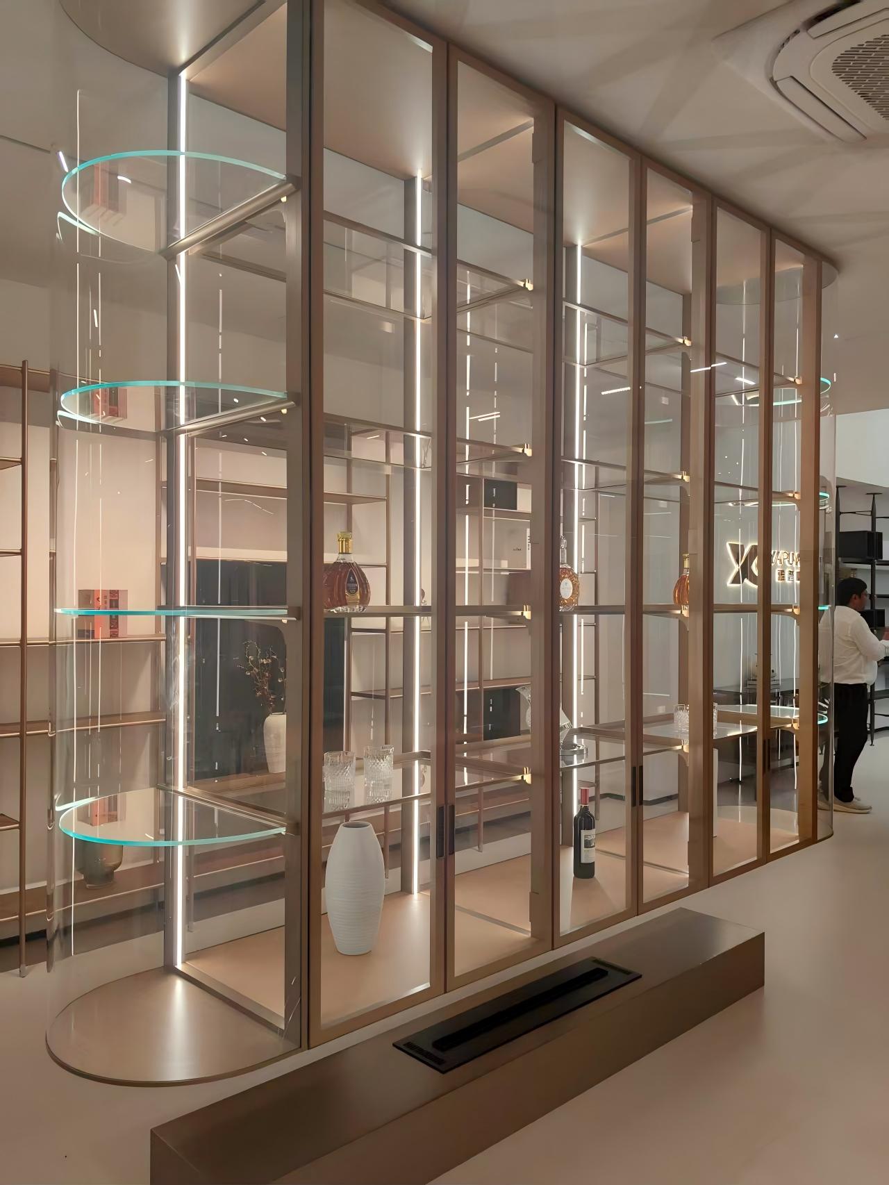 Customize Curve Shape Glass Cabinet is one of the new trend of our production line in minimalist furniture.