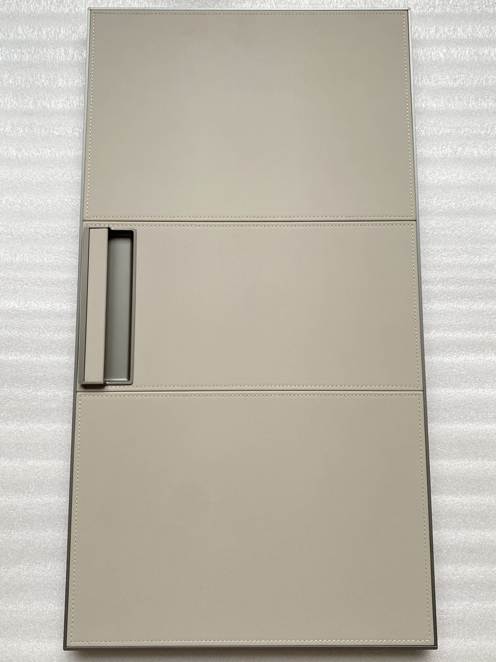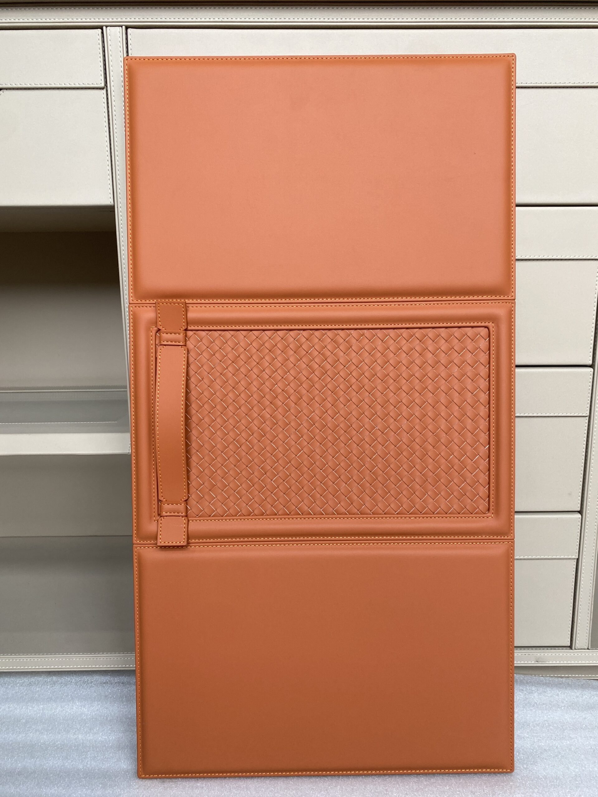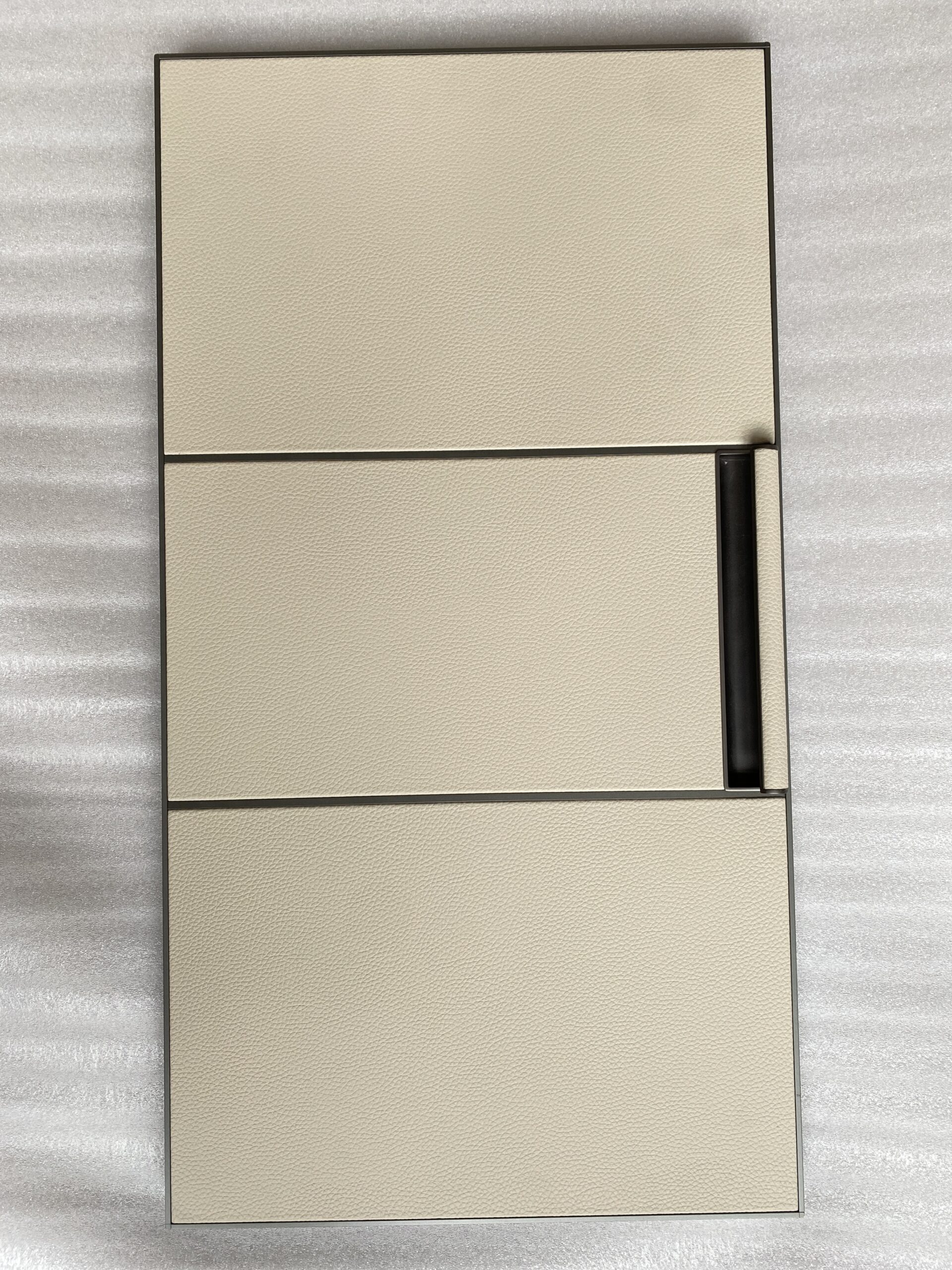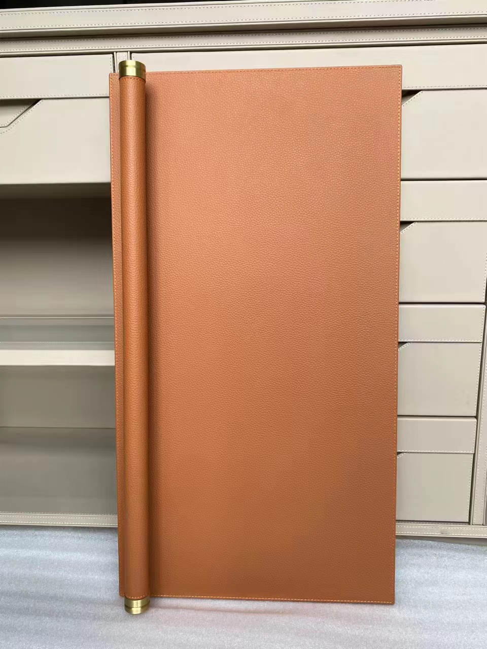 We use Continental man make leather to laminate on plywood panel. With exquisite stitching craftsmanship.