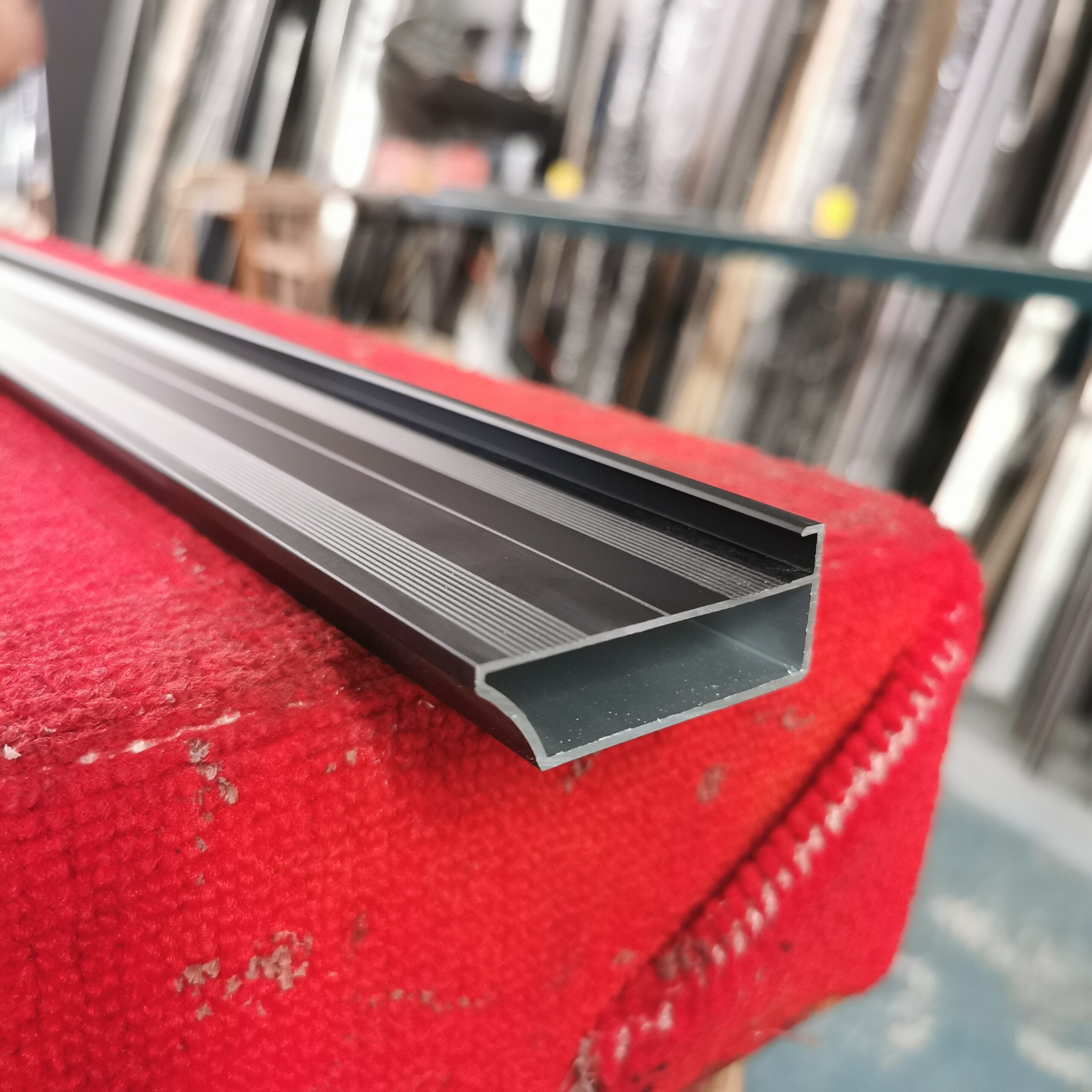 Item GYM-517, Luxury glass frame door profile. Length 3000mm. 50mm width. 1.2mm thickness. suit for glass which is less than 5mm thickness.