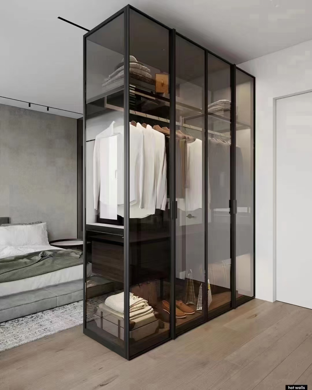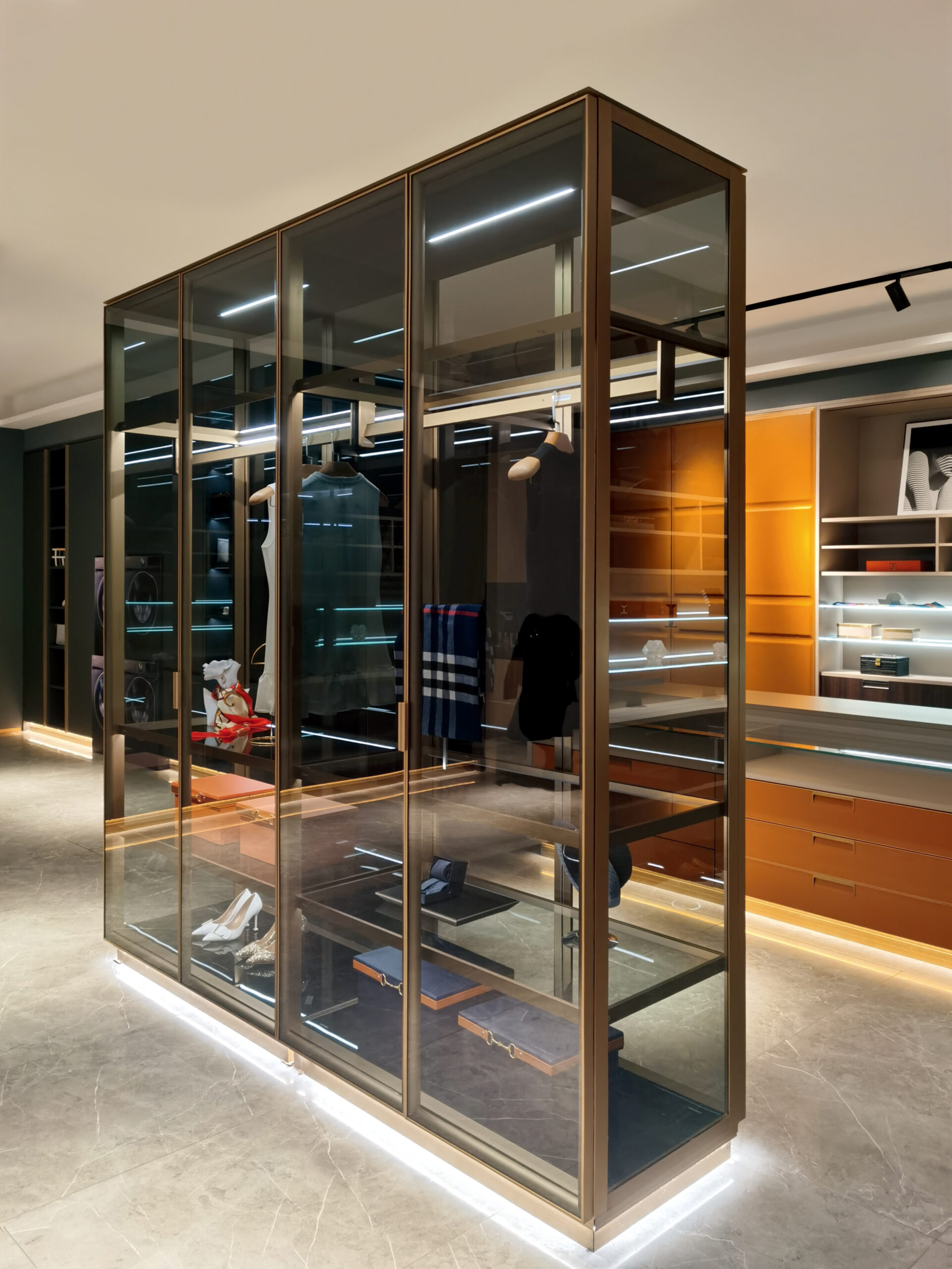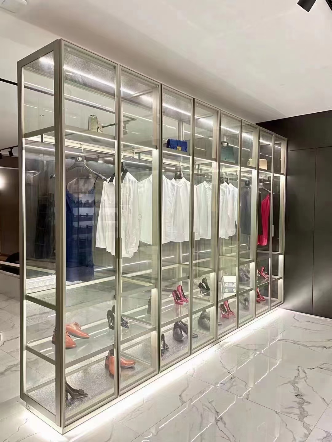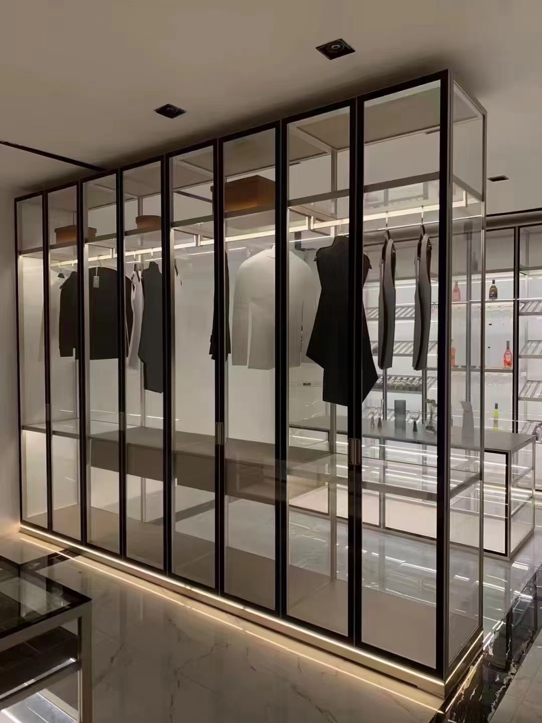 Simple glass cabinet system is only combine with 2 different profiles for the cabinet body.